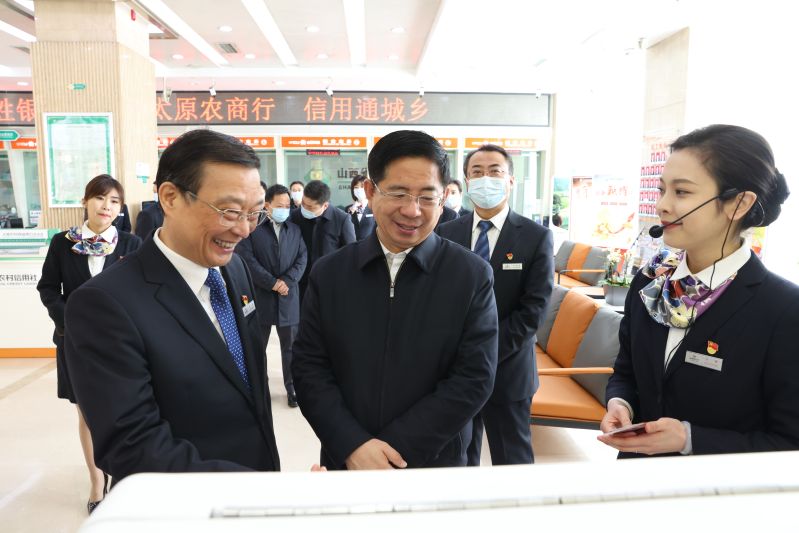 在太原农商银行南内环支行,张吉福常务副省长详细了解了基层网点的党建工作,以及营销模式、厅堂服务、产品创新等情况,鼓励干部员工再接再厉、再创佳绩。2020年6月以来,省联社党委坚持“一二三”工作思路,持续推进“四大战役”,全面开展重建重塑,完成了包括太原农商银行在内的16家机构改制化险,农商银行总数达到100家,改制完成率93%。改制后的农商银行经营活力得到进一步释放,服务地方经济社会发展的能力和效果显著提升。
